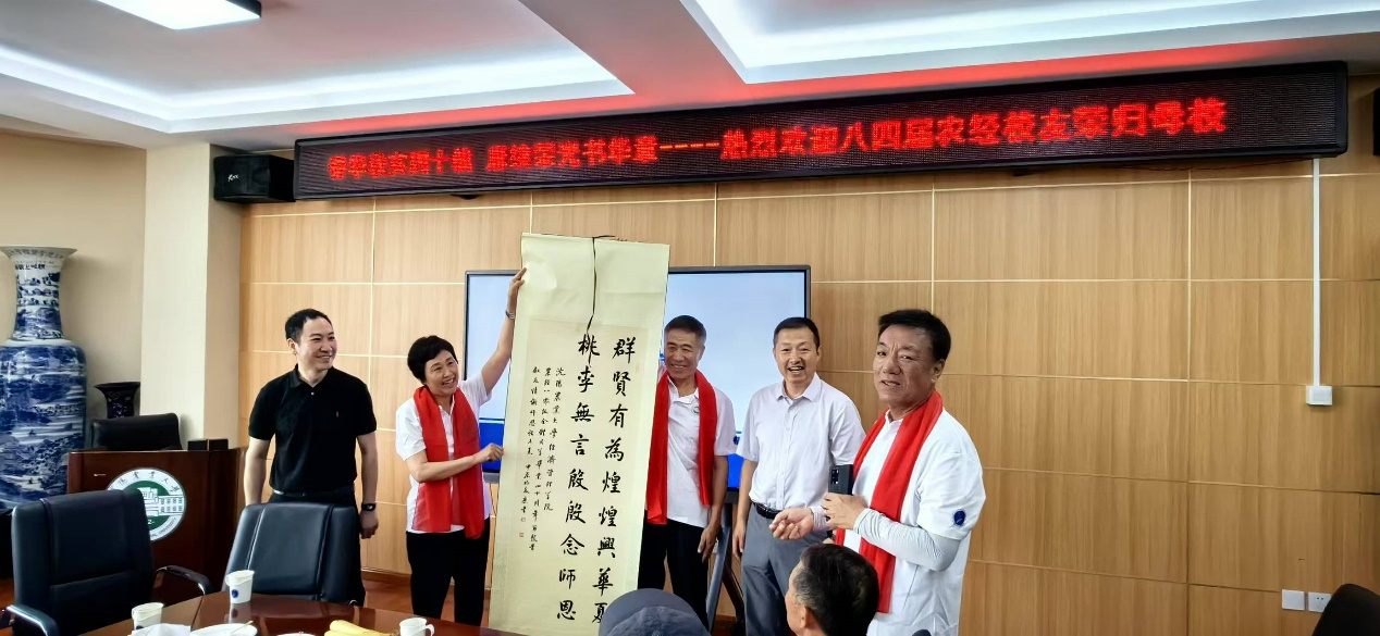 2024年6月22日,yl6776永利集团1984届农经专业校友毕业四十年值年返校,20余位校友重返母校,与院领导、教师代表共叙情谊、共话发展。座谈会上,校友们分享了在乡村振兴、农业政策研究等领域的实践经验,并为学科建设及人才培养建言献策。学院领导介绍了专业最新发展成果。会上还举行了校友赠送学院字画交接仪式。活动期间,校友们参观了校史馆、院史馆,重走校园,回忆美好大学生活,校友们纷纷感慨学校的发展变化,表达了对母校的浓浓情怀。