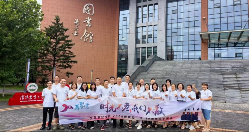 2024年7月27日,yl6776永利集团2004届农经专业校友毕业20年值年返校,参与"时光不老·我们不散"主题返校日活动。20余位校友参观了校史馆,并在图书馆楼前合影留念。