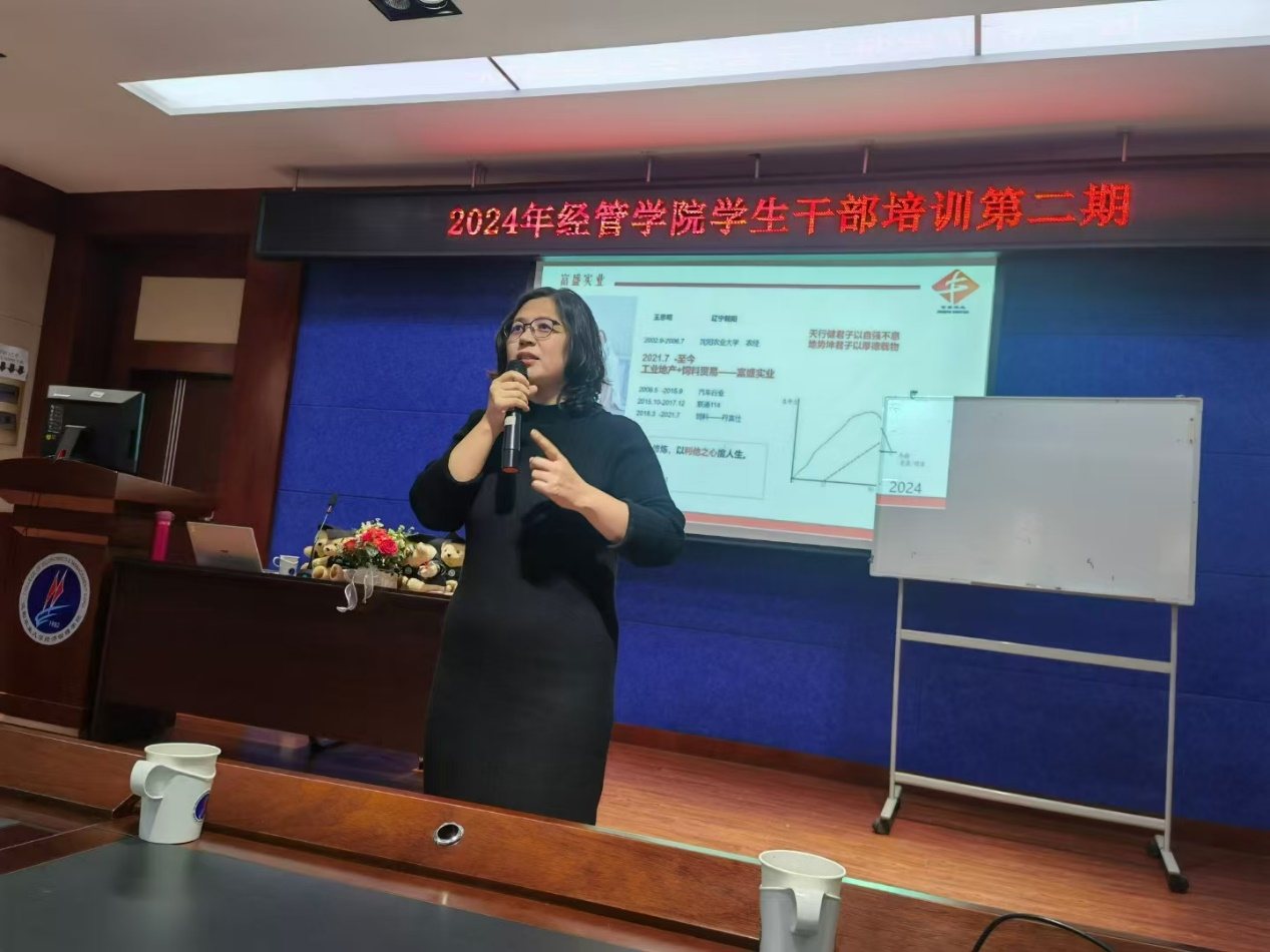 2024年11月27日,经管学院邀请2006届农经专业优秀校友、富盛实业总经理王思明重返母校,与50余名在校学生干部开展座谈交流。王思明结合自身从农经学子成长为企业负责人的经历,分享了素质提升及职业规划建议,并通过案例分析为学子解析行业前沿动态。互动环节中,他针对"智慧农业创业"等问题进行了解答,现场气氛热烈。